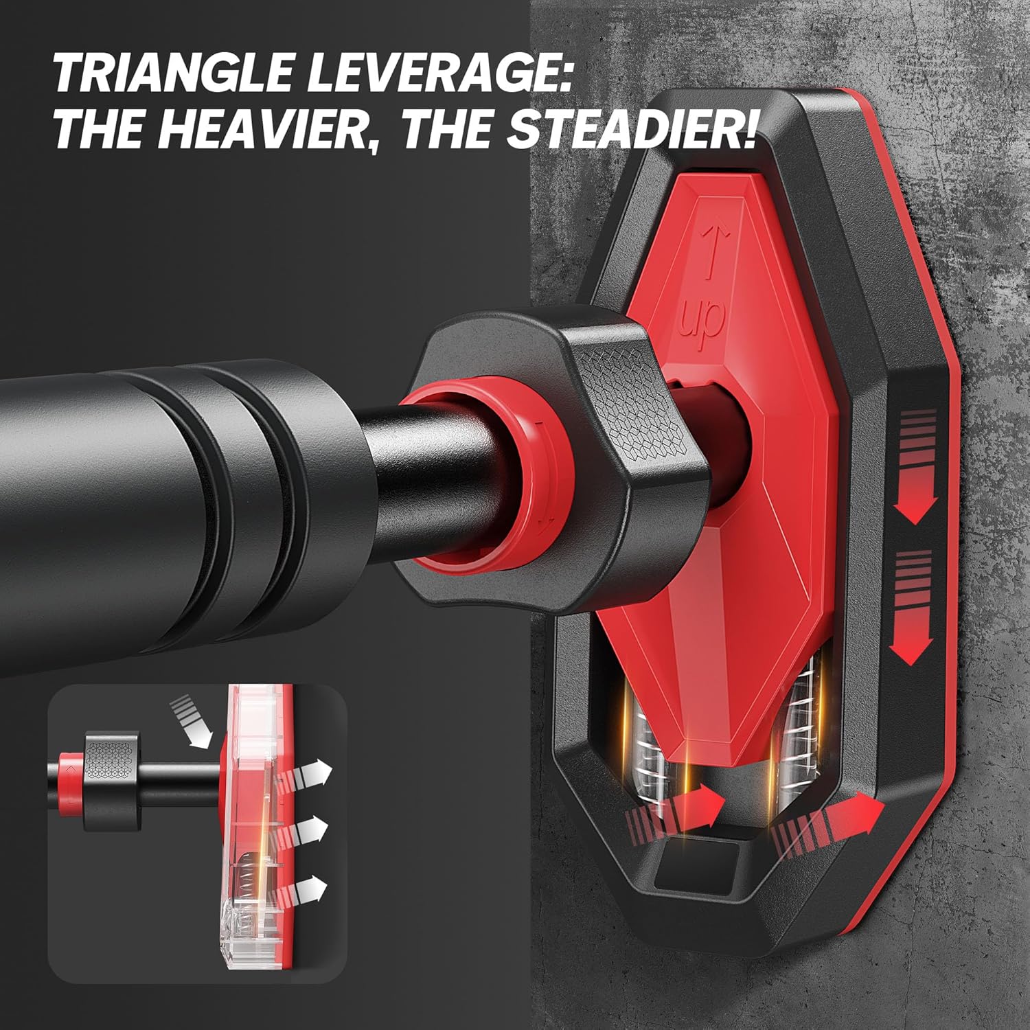WARMOUNTS pull Up Bar features an innovative triangular bracing system reinforced with a high-strength dual-spring base for exceptional support. Tested to hold up to 330 lbs (150 kg), ensuring zero wobble during intense workouts. Train with confidence and complete peace of mind at home.