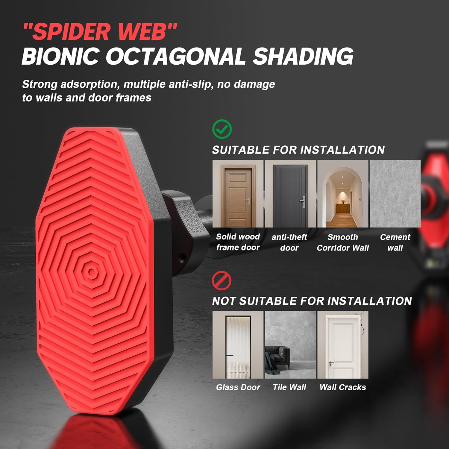The doorway Pull Up Bar use unique octagonal spider-web pattern design increases touch area by 65%. Made with high-friction silicone for superior grip on all surfaces. Secures tightly without damaging door frames or paint – optimal for renters and homeowners.