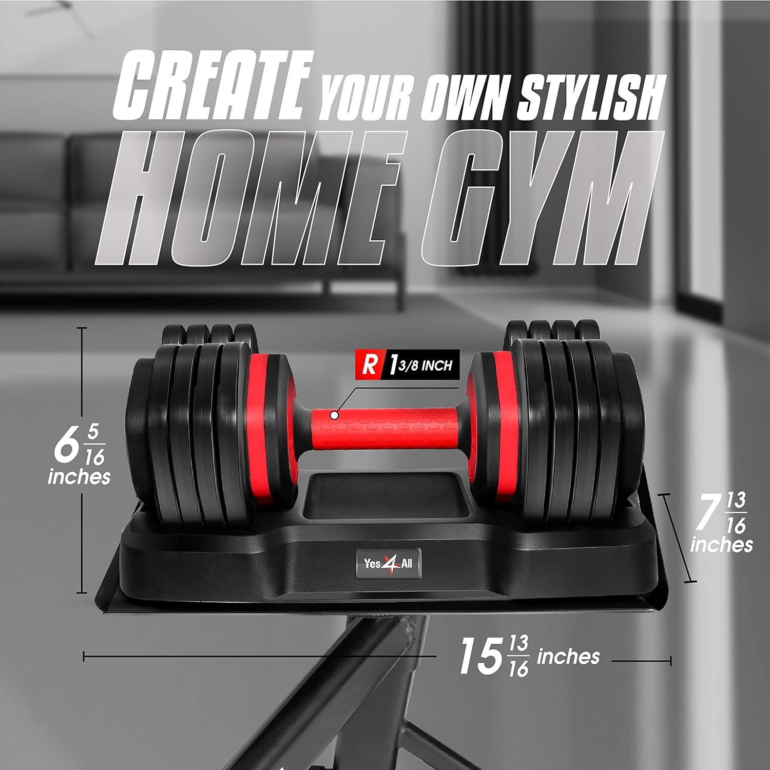 Specification: Yes4All 25/55LB Adjustable Dumbbells Pair/Single, 5-in-1 Dumbbells Adjustable Weights with Anti-Slip Handle & Sturdy Prolocks